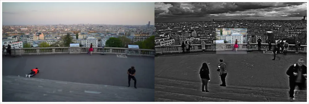 Chacune de celles-ci est un mix d’une photo prise à l’époque du premier confinement et d’une seconde prise quelques mois ensuite (novembre 2021). La photo la